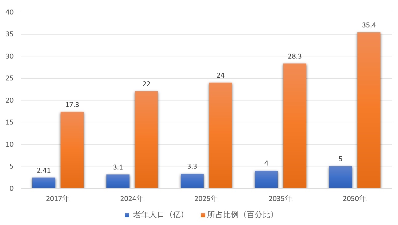 我國確立了“以居家為基礎(chǔ)、社區(qū)為依托、機構(gòu)為支撐”的養(yǎng)老產(chǎn)業(yè)框架和9073養(yǎng)老格局,90%在家中養(yǎng)老(居家養(yǎng)老);2026年2月28日,國家統(tǒng)計局發(fā)布,截至2025年底,我國60歲及以上老年人口有3.23億人,占總?cè)丝?3%,其中,65歲及以上人口超2.23億人,占15.9%,在2050年前后達到頂峰,約占總?cè)丝诘?/3。那時,中國將有4.8億、甚至接近5億老年人,是世界上老年人口最多的國家。養(yǎng)老服務(wù)業(yè)目前已達10萬億市場規(guī)模。